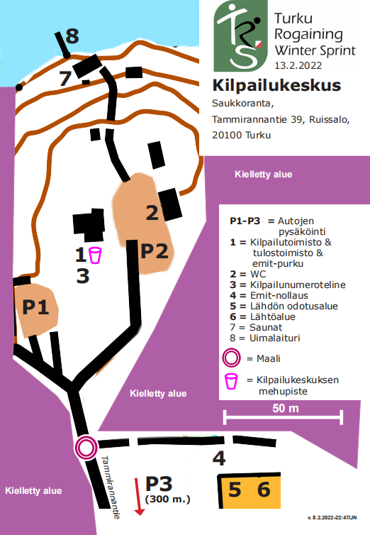 Kilpailukeskuksena toimii avantouintikeskus Saukkoranta, Tammirannantie 39, Ruissalo, 20100 Turku